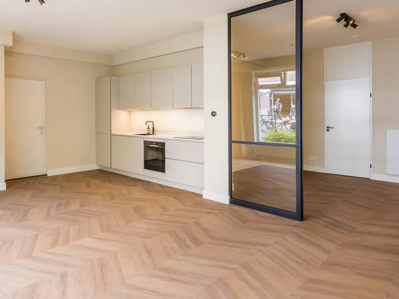 In Amsterdam heeft Kitchen4All Beuningen deze strakke keuken mogen opleveren. Er is gekozen voor een zandkleurige keuken gecombineerd met zwarte elementen.