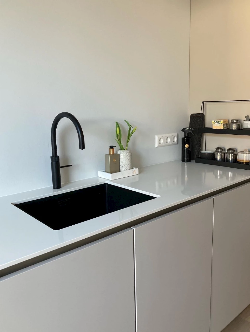 Afgelopen najaar hebben zandkleurige keukens hun intreden gemaakt en het is inmiddels echt een trend. De zachte uitstraling van de zandkleur zorgt ervoor dat de keuken een ontspannen sfeer krijgt. Je kan de sfeer versterken door een koperen of gouden kraan en/of spoelbak aan de keuken toe te voegen. Past een moderne look meer bij jou? Combineer de zandfronten dan met een zwarte kraan en/of spoelbak. Deze familie heeft gekozen voor een keuken met zandkleurige fronten. Deze zijn gecombineerd met mat zwarte elementen, wat voor een moderne uitstraling zorgt.