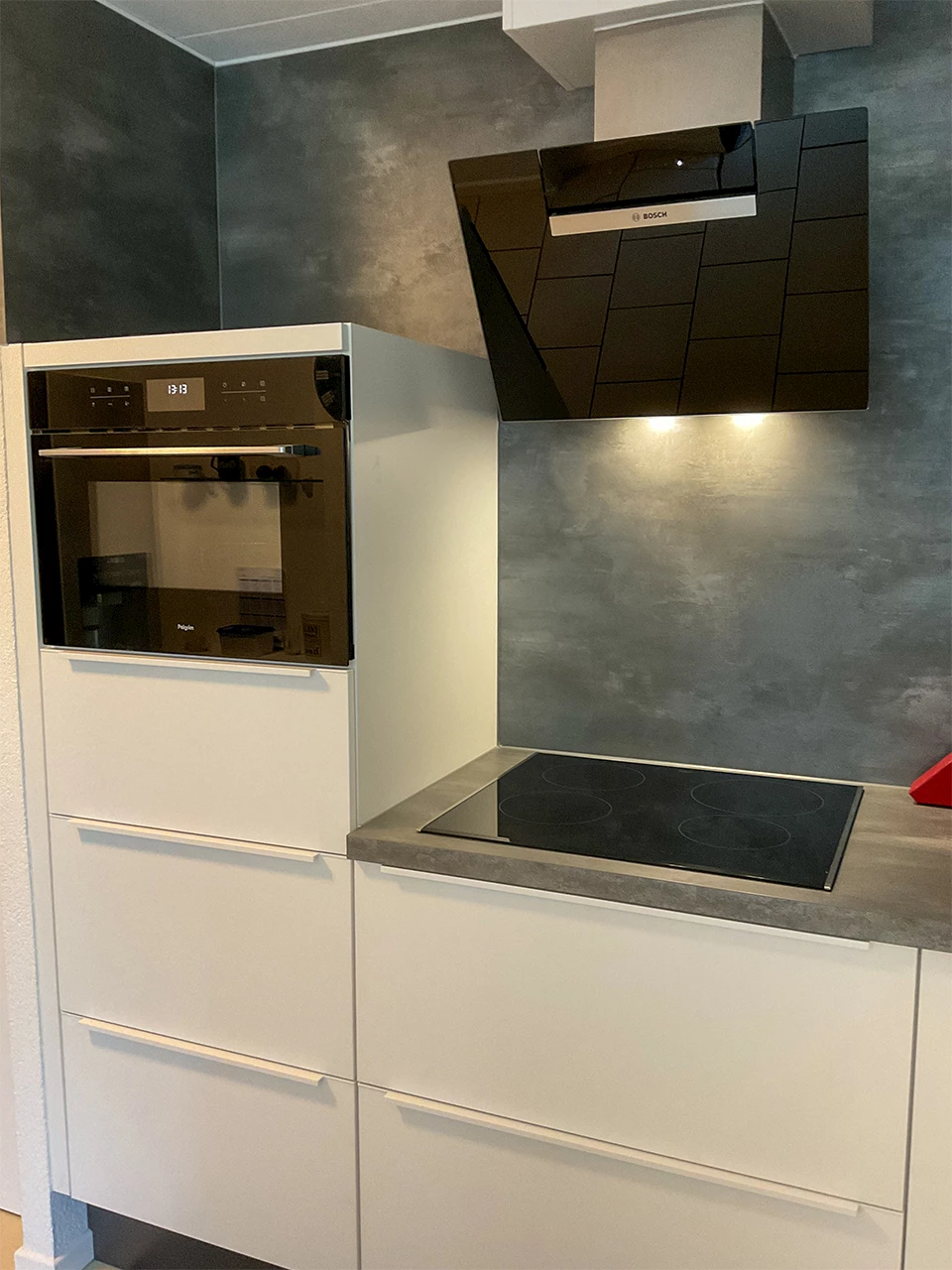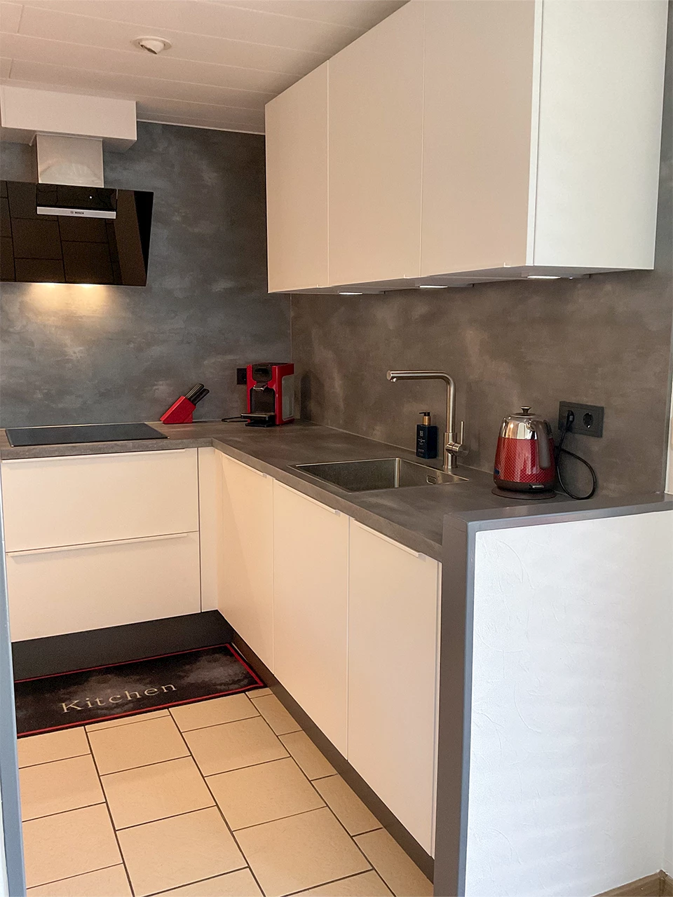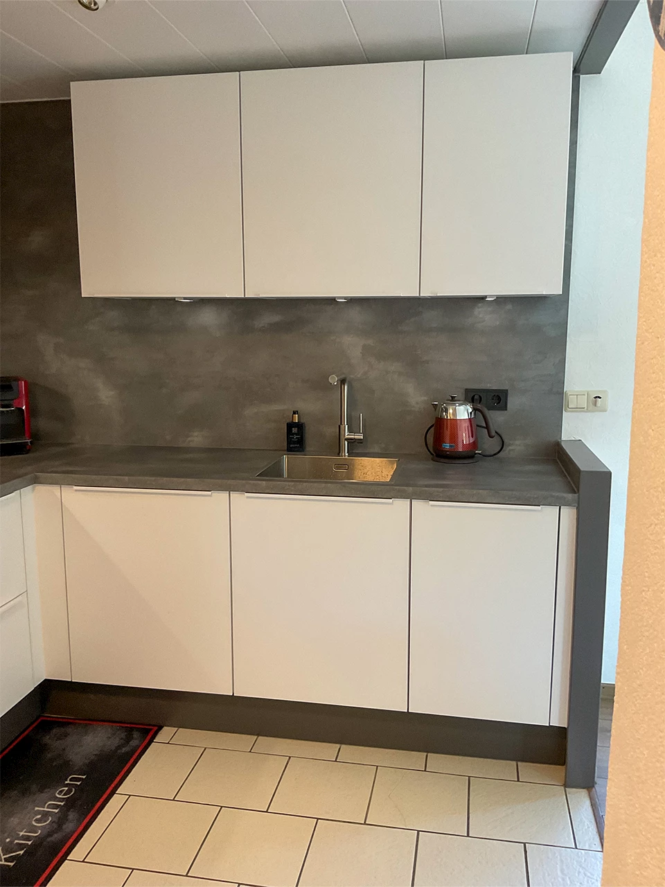 Deze stijlvolle keuken is opgeleverd door Kitchen4All Zevenaar bij de familie Wiersma. De combinatie van de witte fronten en de betonlook elementen creƫren een prachtig tijdloos geheel.
