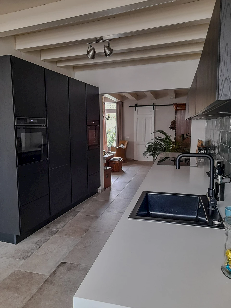 De familie Zandbergen uit Doesburg heeft deze landelijke woonkeuken samen met Kitchen4All Zevenaar gerealiseerd. Door de keuze voor zwarte fronten laat de familie goed zien dat een landelijke keuken een moderne uitstraling kan hebben!