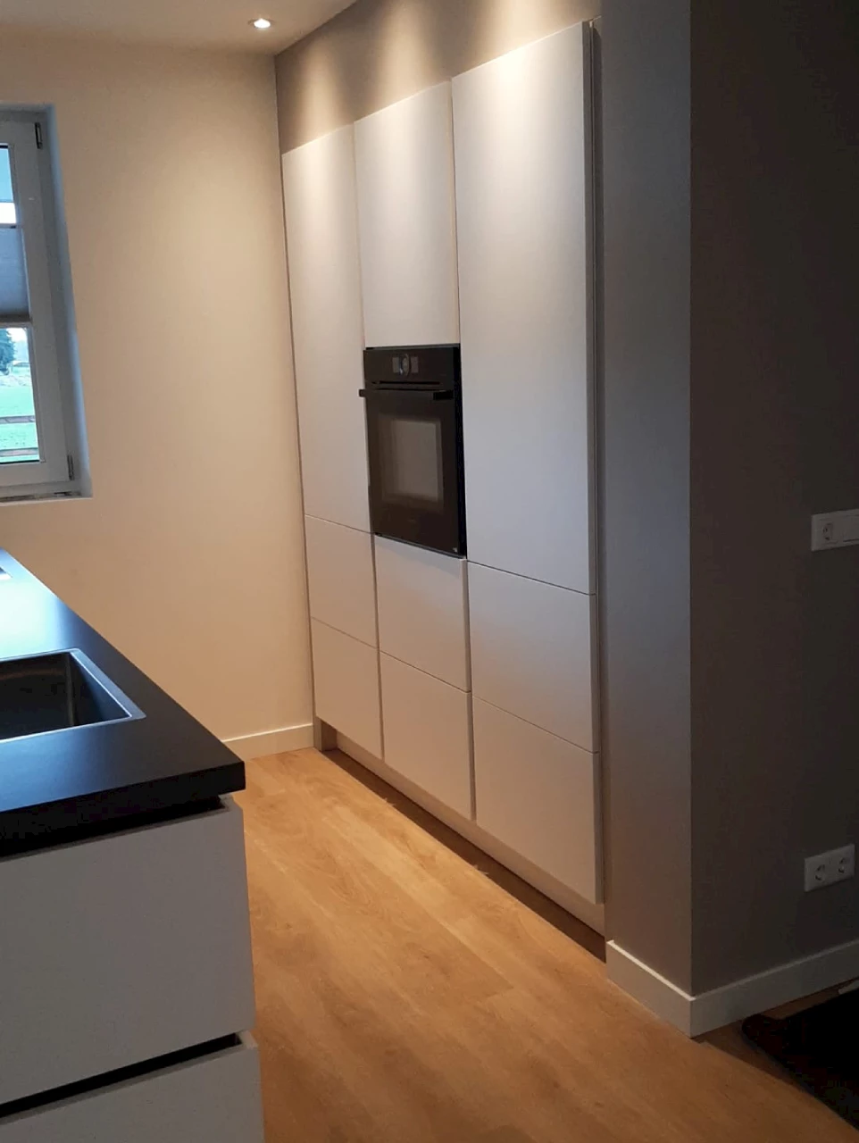 Witte keukens zorgen voor rust en sfeer in een ruimte. Door de witte kleur zijn deze keukens makkelijk te combineren met andere kleuren en patronen. Witte keukens zijn daardoor eenvoudig toe te passen in verschillende keukenstijlen. Door middel van accessoires kan je de keuken volledig naar smaak aankleden en je eigen stijl creëren. Deze familie heeft gekozen voor een mat witte keuken in combinatie met een zwart blad. Dit zorgt voor een speels effect! Daarnaast is er gekozen voor een natuurlijke kleur op de muur, waardoor de keuken een moderne uitstraling krijgt.