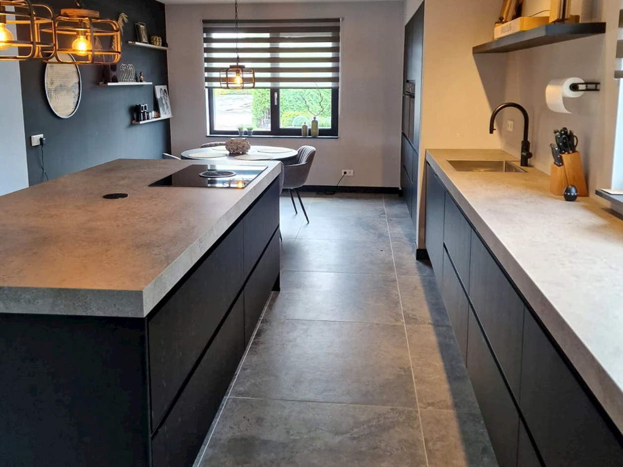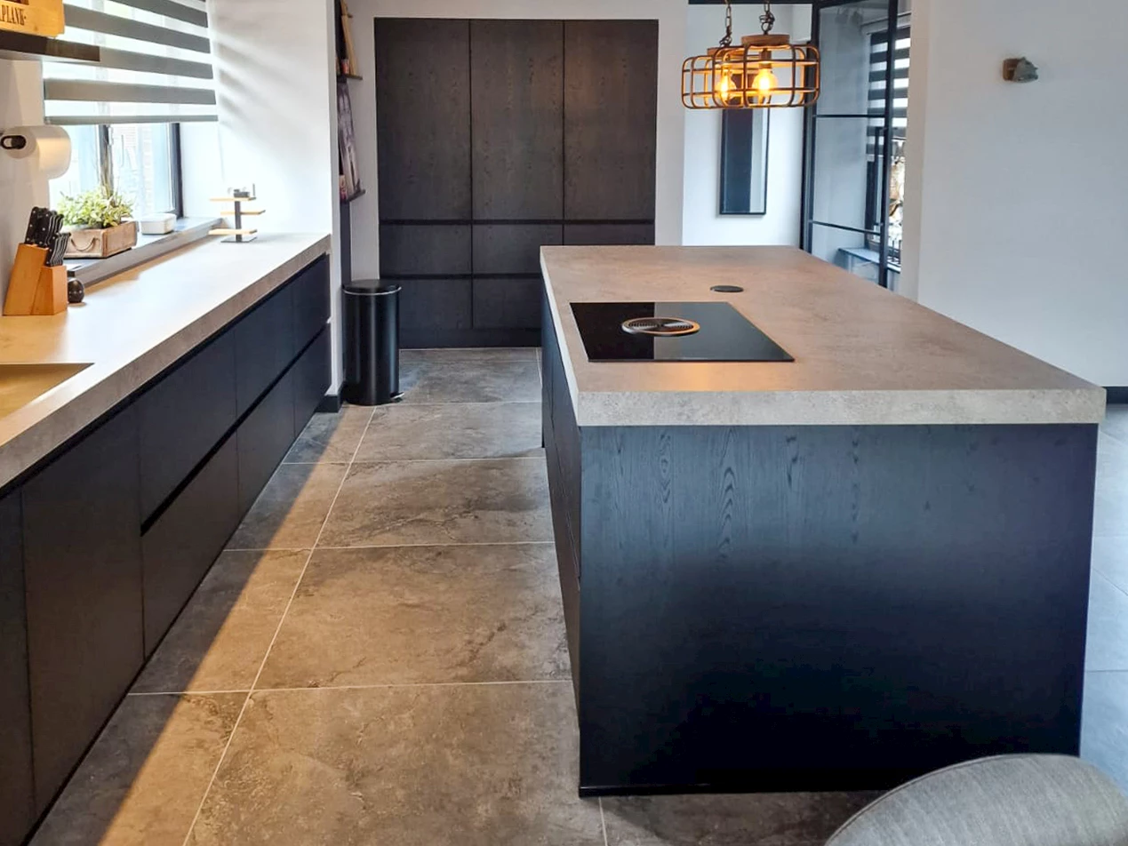 Deze moderne keuken is opgeleverd door Kitchen4All bij een familie uit Kaatsheuvel. De combinatie van de zwarte fronten en het betonlook werkblad zorgen ervoor dat deze moderne keuken een stoere touch krijgt.